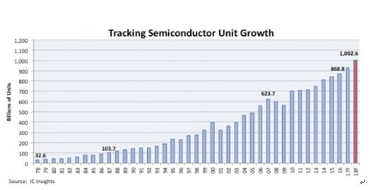 2018年全球半導(dǎo)體出貨量將超過1萬(wàn)億顆