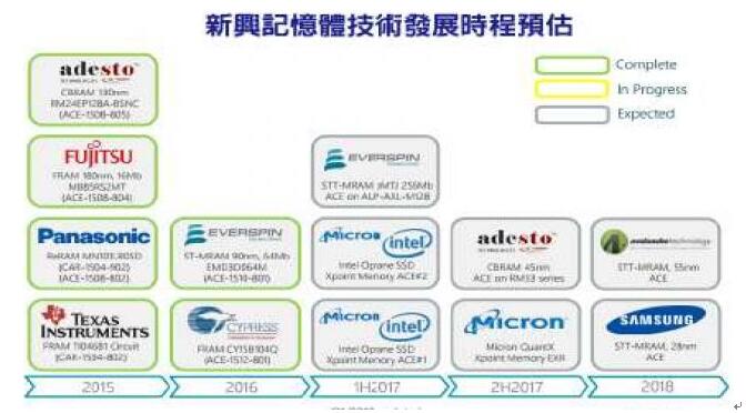 根據研究機構Tech Insights估計,包含FRAM、STT-MRAM、3D Xpoint 、CBRAM等新世代內存,都已陸續進入小量生產階段。 不過,這些新興內存技術中,除了少數存儲芯片例外,要發展到能跟NAND Flash、DRAM不相上下的程度,恐怕還需要很長的一段時間,因為DRAM與NAND Flash已具備極為龐大的經濟規模,即便新興內存技術在性能方面明顯優于現有內存,在供貨穩定度、成本方面也未必能與現有內存技術相抗衡。