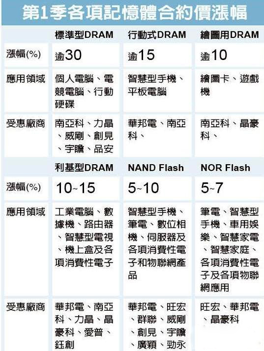 據了解,首季NOR Flash已敲定漲價5~7%,下季漲幅會更擴大到逾10%。