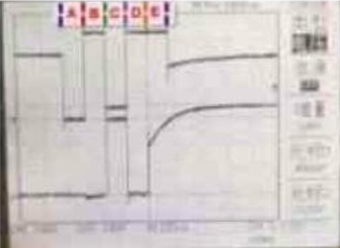 將示波器的通道1連接到寫使能信號,通道2連接到數(shù)據(jù)端D7。如圖1 所示,上方的波形為通道1接收的數(shù)據(jù),下而的波形為通道2接收的數(shù)據(jù)。設(shè)計輸入向量測試,當?shù)刂窞镺OO時,將片選端CS置為低電平,圖1 中,A區(qū)WT=*0”,RD=“1“,RD= “0”,讀出寫入數(shù)據(jù) 為“0”; B區(qū)WT=“1”,數(shù)據(jù)為“0”; C 區(qū)WT=“0”,RD=“1”,寫入數(shù)據(jù)為“1”D 區(qū)WT-“1”,RD-“1”,為了更好地觀察讀出“1”時端口的電平變化,該段不進行讀寫,在輸出端口上加弱的低電平信號; E區(qū)WT=“1”,RD=“0”,讀出數(shù)據(jù)為“1”,可明顯地看到讀出數(shù)據(jù)“1”的過程。從圖中可以看到數(shù)據(jù)“0”和“1”被成功地寫入和讀出。