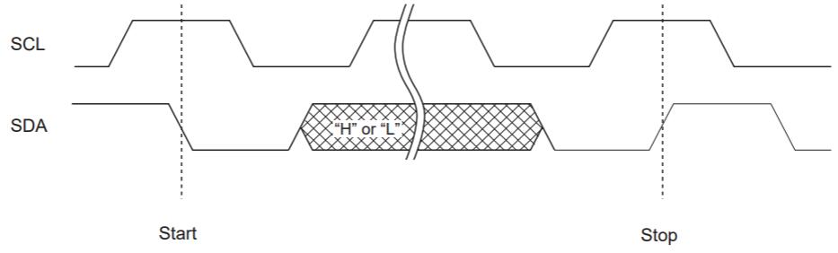 I2C總線僅通過兩條線提供通信,因此,當(dāng)SCL為“L”電平時,SDA輸入應(yīng)改變。但是,在啟動和停止通信序列時,SDA允許更改,而SCL為“H”電平。