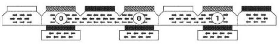 為了寫入單個(gè)位,電流通過(guò)存儲(chǔ)線,并且多鐵性元件和自由層的相互作用確定層之間的反平行極性為“ 1”(高電阻),層之間的平行極性為“ 0” (低電阻)。然后,通過(guò)減小存儲(chǔ)線和多鐵性元件之間的交換偏壓來(lái)更改存儲(chǔ)域的磁化強(qiáng)度(請(qǐng)參見上圖)。存儲(chǔ)器域是可獨(dú)立寫的,只需要一個(gè)電流輸入即可存儲(chǔ)數(shù)據(jù)。這大大降低了能耗和寫入周期所需的時(shí)間,從而提高了成本和性能效率。