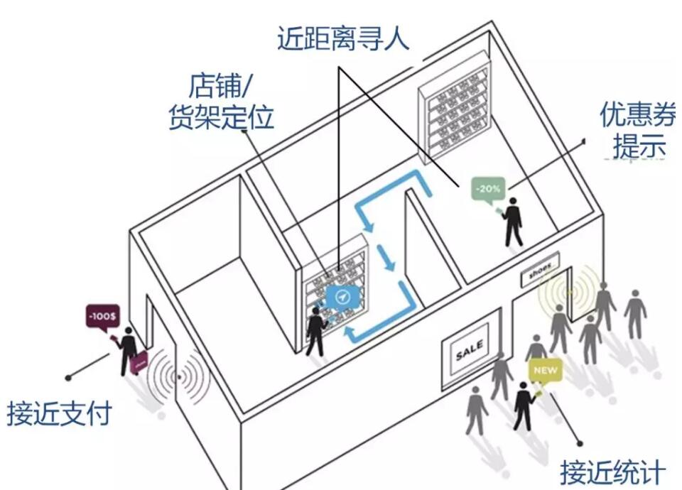 基于位置的服務(wù)(LBS)成為互聯(lián)網(wǎng)巨頭在實(shí)現(xiàn)O2O的重要手段。BLE的廣播信號(hào)是每一臺(tái)手機(jī)都可以收到的信號(hào),一個(gè)顧客在接近商鋪時(shí)就可以收到商家推廣廣告。在微信中的搖一搖“周邊”中,主要采用這種技術(shù)。