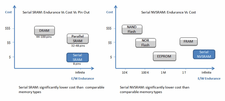 串行SRAM和NVSRAM在尺寸、電壓、速度、功耗和成本等方面帶來了諸多優勢。